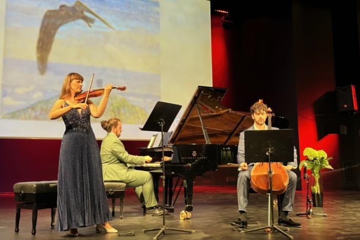 13.2.2025. U interpretaciji Mozartova Kegelstatt trija osjetila se lakoća sviranja i primjereno poimanje klasičnoga stila u čistoći intonacije unatoč brojnim tehničkim zahtjevima. Suglasje triju glazbala obilježila je raslojena dinamika, logično fraziranje i lijepi ton klarinetista Marka Zavišića i violistice Hiwote Tadesse te sigurne i jasne klavirske dionice Domagoja Guščića. ...pročitajte cijeli tekst...