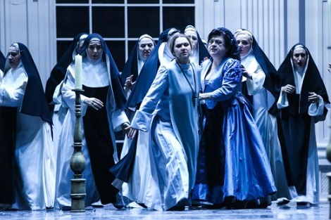 Prepoznali smo i neke tipične redateljske potpise Bernarda, kao što su scene sa zborom - detaljno režirane, s puno pokreta i živih gesti, na granici mahnitosti, kao kontrast ili možda odraz unutarnje drame pojedinaca. Neobičan, ali vrlo efektan potez je režija zbora Miserere, koji umjesto redovnika izvan scene pjevaju mrtvi Manricovi vojnici ležeći na podu, dok Leonora hoda među njima, tražeći Manrica. Radnja smještena u doba borbe Španjolaca protiv Napoleona (kojega vidimo i na sceni, igra ga Antun Brzak) određuje scenografiju - bijelo dvorište palače koje funkcionira u svim činovima, preobraženo detaljima i često osvijetljeno bijelim, hladnim svjetlom odozgo (svjetlo oblikuje redatelj). Kostimi su bili izrazito lijepi, i za soliste i za zbor, prenoseći kolorit slika Francisca Goye, suvremenika i jednog od najznačajnijih slikara španjolskog ustanka protiv Francuza, koji nadahnjuje ovu režiju.