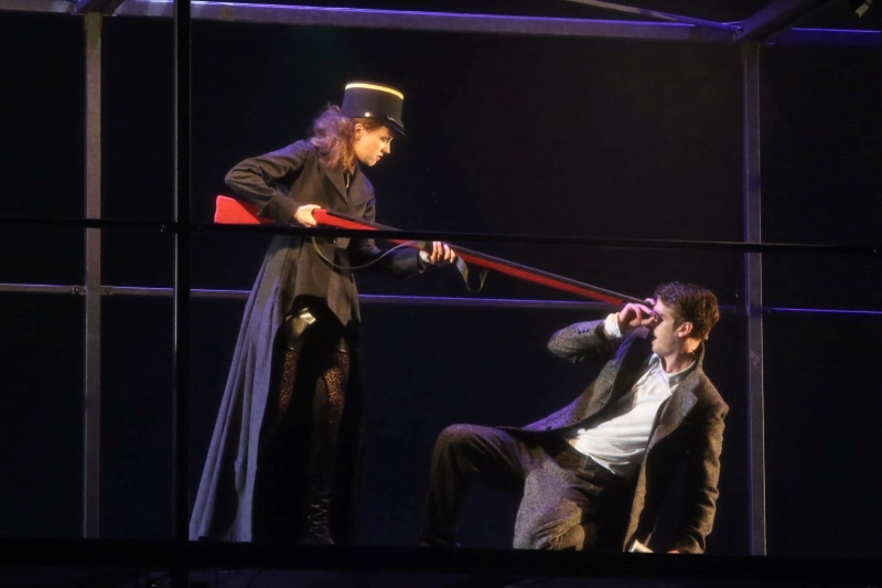 Predstava prati Kamova na njegovom putovanju kroz gradove, vodeći ga i figurativno i doslovno do kraja puta, odnosno do kraja života. Rijeka i Zagreb, Genova, Marseille i Barcelona – iako bi nam kao geografske odrednice trebali govoriti o mediteranskoj toplini za kojom je možda u svom odabiru Kamov tragao, izvor su kontrasta – njihova toplina, prikazana kroz nježnu habaneru tenora u ulomku Marseillea ili flamenco u Barceloni, kao i odabirom originalnih jezika u libretu, u suprotnosti je sa sve debljim velom hladnoće za koju osjećamo, kako opera protječe – bilo u bojama orkestra ili apartnosti vokalnih dionica, da sve više okružuje Kamova i izdvaja ga od realnog okruženja i udaljava od ishodišta, od pulsa života, dok se približava posljednjoj toploj mediteranskoj prijestolnici. Zvukovi željeznice i odlično ostvarene video-projekcije Ivana Lušičića Liika na jednostavnoj i uspjeloj scenografiji Liberte Mišan, dočaravaju ne samo hektičnost tih gradova u koje Kamov dolazi, nego i njegovo grozničavo postojanje.