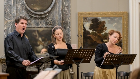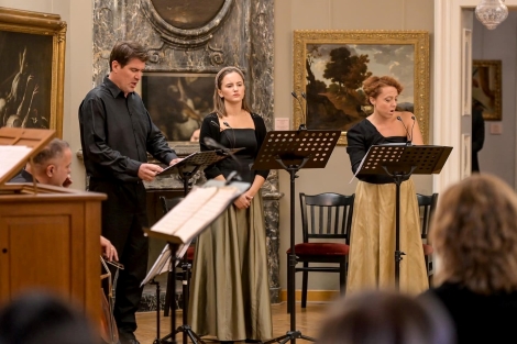 Sopranistica Ivana Lazar već se mnogo puta dokazala kao nadasve sposobna interpretkinja baroknog repertoara. Izvodeći Schützove duhovne skladbe dosegla je novu razinu naglašenog senzibiliteta u donošenju ne samo stilski istančanih interpretacija glasom koji je kontroliran u svim položajima, intonacijski pouzdan i dinamički pažljivo dociran, već napose u načinu izvođenja kojim otkriva duboko razumijeva duhovnih tekstova i njihovih poruka. Tome se dobro uklapila mlada nada Josipa Bilić svojim zvonkim sopranom iako još s nedovoljno razrađenim izgovorom, dok je iskusni bas Berislav Puškarić plijenio pozornost osobito ugodnom bojom glasa i tehničkom sigurnošću.