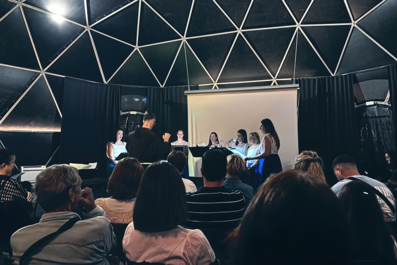 Izvedbeni modus u kojem dio članica Lilie dolazi s ulaza, a dio stoji u glavnom izvedbenom prostoru ponovljen je u Višnjanu i tamo je inducirao podjednako efektan glazbeni trenutak. Vokalne dionice a capella izvođenih gregorijanskih stvorile su svjetlo vjere koje za sobom nosi smiraj od svjetovnih izazova odsutnih u molitvi, ali i u svemiru. Publika je ponovo poštovala naputak da ne plješće između glazbenih brojeva što je stvorilo primjeren ugođaj. Na kraju se višnjanskom kupolom zaorio aplauz koji je rezultirao dodatkom, ovaj put uz pratnju triangla koji se, ruku na srce, pokazao kao manje atraktivno rješenje od bubnja bodhrán. Kao na Trastu između glazbenih brojeva smjestila su se čitanja odlomaka iz Svetog pisma (čitala: Monika Marković Šurlina), a za fragmentarnu glazbenu pratnju bio je zadužen Mario Košmerl.