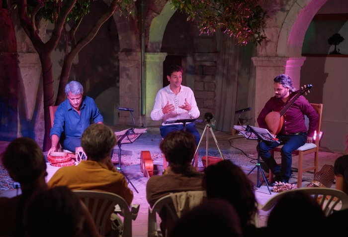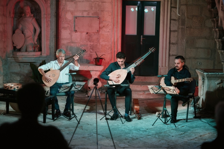 Atrij bivšega dominikanskoga samostana Kuvenat građen od 70-ih godina 17. stoljeća prostor je u kome smo slušali skladbe nastale tijekom 17. stoljeća. U ansamblu I Bassifondi, osnovanom 2014. godine, su tri glazbenika: Simone Vallerotonda (arhilutnja, barokna gitara i umjetničko vodstvo), Gabriele Miracle (udaraljke, colascione) i Stefano Todarello (colascione, battente gitara i sordellina). Instrumenti koje sviraju tipični su za razdoblje baroka pa ih valja pobliže opisati. Arhilutnja (ili nadlutnja) ulazi u instrumentarij u Italiji oko 1600. godine, a uz dugi vrat proteže se četrnaest struna. Colascione (ili žirafa-lunja) poznata je još u vrijeme renesanse, a tipičan je za nju dugi vrat preko kog je napeto između tri i šest žica. Gitara (chitarra) battente ja također instrument naslijeđen iz 16. stoljeća koji najčešće ima pet parova žica. Sordellina koju smo čuli u Toccati Arcangela Lorija (1611-1679) iz zbirke Manuscritto di Peruggia XVII seccolo je puhački instrument sličan gajdama.