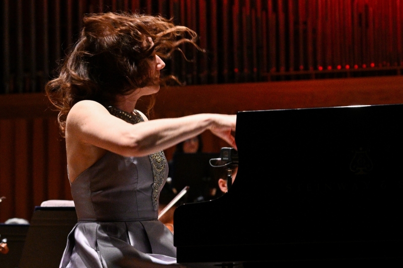 Tremolo timpana na početku prvoga stavka Brahmsovog Koncerta za klavir i orkestar u d-molu poput vihora preletio je dvoranu. Taj je udar u pokret stavio masivni orkestralni aparat, nositelja konteksta za klavirsku dionicu. Dramatičnosti toga konteksta doprinose snažni trileri u gudačima koji zbog svoje siline i disonantnosti zvuče poput destiliranog užasa. Kada zagrebemo pod površinu, lako je shvatiti Brahmsov odabir takvoga početka, s obzirom na to da je stavak posvećen Robertu Schumannu, koji je u Brahmsovom životu imao ulogu velikog mentora i bliskog prijatelja, te koji se zbog svoje depresije 1854. bacio u Rajnu, iste godine kad je započelo skladanje Koncerta. Prvi stavak, međutim, nije isključivo ponovno proživljavanje šokantnoga događaja, jer, kao što to sonatni oblik nalaže, nakon vrhunca napetosti gdje se prijeteći trileri izmjenjuju između klavira i gudača nastupa smiraj, nakon čega upravo trileri otvore put u durski tonalitet druge teme. Egzaltaciji doprinose triolske pasaže u klaviru, kojima potporu daju gudači svojim legato sviranjem dugih izdržanih tonova, rezultirajući preplavljujućim osjećajem zanosa. Širinu i stabilnost nakon toga donosi motiv baziran na čistoj kvarti u dionici francuskog roga, poput evokacije drevnoga zvuka koji je nekoć pratio lov, čime se glazbena radnja potpuno smiri u tihoj dinamici. Unatoč tome, tmina nije potpuno izgnana iz krajolika; vraća se u obliku prodora trilera iz uvoda i prve teme, čime ima i zadnju riječ s obzirom na to da je koda sačinjena od istog materijala. Potrebno je naglasiti izvrsnu komunikaciju između dirigenta, orkestra i solistice, kao i njezinu virtuoznost, zahvaljujući kojima rubato i glazbena deklamacija ne smanjuju njihov sinkronicitet nego izvedbu uzdižu na superiornu razinu.