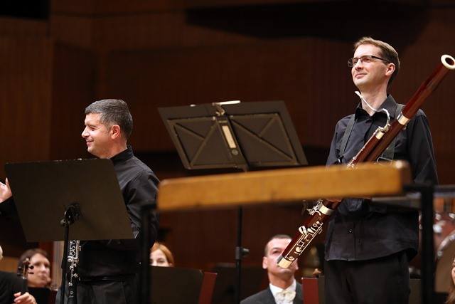 Solisti su bili vodeći članovi Zagrebačke filharmonije - klarinetist Mario Fabijanić i fagotist Petar Križanić. Upravo je njihovom zaslugom i iznimnim kvalitetama to zahtjevno djelo od tri ulančana stavka (Allegro moderato- Andante-Rondo) prvi put uvršteno u repertoar tog našeg orkestra. Oni su majstorski izveli svoje melodiozne i virtuozne teme u skladnom međusobnom dosluhu i nadopunjavanju. Podržali su ih i pomogli im kolege gudači Zagrebačke filharmonije s istaknutim solistima u maniri concerta grossa. Bili su to odlični vođe svojih dionica - koncertni majstor Orest Shourgot, violinistica Ana Paula Knapić Franković, violist Dragan Rucner i violončelist Smiljan Mrčela.