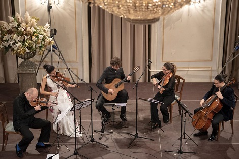 Mekanije od suvremenih paradnih virtuoza Susanna Yoko Henkel prihvatila se zahtjevne Sonate za violinu i continuo u g-molu Giuseppea Tartinija. Oprezno i kontrolirano je uz srdačnu suradnju gitare Petrita Ҫekua i Santiaga Cañona Valencije na čelu vedro predstavila Tartinijevu Sonatu s malo manje đavolskih predodžbi. Iz velikog Telemannova koncertantnog opusa izabran je i Koncert za violu i orkestar u G-duru. Violistica Sara Ferrandez je dotjeranom i promišljenom izvedbom, kao i izgledom, bila pravi reprezentant nove generacije glazbenika za izlog, kakvi se danas nose.