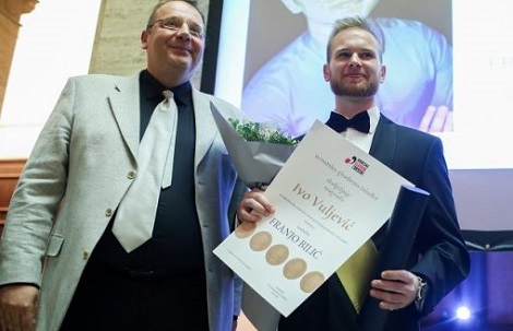 Franjo Bilić je prve poduke čembala dobio od prof. Višnje Mažuran, a diplomirao je u razredu prof. Pavla Mašića na Muzičkoj akademiji u Zagrebu. Zanimljivo je da je bio prvi student u Hrvatskoj koji je diplomski ispit odsvirao na klavikordu, virginalu i dva čembala, kako bi bio dosljedan stilu pojedine glazbene epohe te približio publici različite mogućnosti pojedinih instrumenata. Stoga je bila zapažena i obrana njegova diplomskog rada s temom Sviranje klavikorda kao preduvjet kvalitetnijeg sviranja klavira, čembala i orgulja. Osvojio je nekoliko nagrada, održao brojne koncerte u više europskih država te se i dalje usavršava i napreduje na svim područjima kojima se bavi. Nagrada Ivo Vuljević uključuje i nastup koji će se održati na idućoj dodjeli ove nagrade dogodine, kao što je i ovom prilikom nastupio prošlogodišnji laureat - violinist Luka Ljubas.Podsjetimo da je ovaj darovit mladi violinist rođen 1996. u Beču, u hrvatsko-japanskoj obitelji glazbenika i da je bio je prvi Hrvat koji je u četrdesetogodišnjoj povijesti Međunarodnog violinističkog natjecanja Vaclav Huml osvojio prvu nagradu i sve posebne nagrade. Učenik je Glazbenog sveučilišta u Beču u razredu Gerharda Schulza i dobitnik još nekoliko nagrada na međunarodnim natjecanjima. Svoje je umijeće i ljepotu tona potvrdio odličnim nastupom uz Zagrebačke soliste u virtuoznoj skladbi za violinu i orkestar Zigeunerweisen, op. 20 Pabla de Sarasatea. Iako od 2014. godine Luka Ljubas svira na vrijednoj staroj violini Giovannija Guadagninija, koju je dobio od Londonske glazbene kuće Beare Violin Society na neograničeno korištenje, u ovoj prigodi imao je zadovoljstvo ljubaznošću HAZU-a svirati na dragocjenoj Guarnerijevoj violini King, pohranjenoj u dobro zaštićenom trezoru HAZU. Violina je dar znamenitog hrvatskog violinista Zlatka Balokovića HAZU-u. Vrijedi 8 milijuna eura i rijetko se (samo pet puta godišnje) iznosi i posuđuje iznimnim umjetnicima uz veliko osiguranje. Na raspolaganju imaju tek nekoliko sati da se priviknu na specifični instrument drugačijih karakteristika, ali Luki je to uspjelo i očarao je mnogobrojnu publiku.