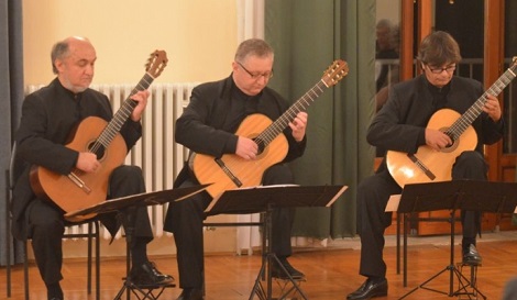 Predstavio je djela od 17. stoljeća do jedne praizvedbe. Svojom kvalitetom gitarski trio potaknuo je mnoge hrvatske skladatelje da pišu upravo za trio gitarista. Osobito stoga što je Darko Petrinjak ujedno i vrsni kontrabasist, pa su basovski temelji uvijek dobro postavljeni. Tako je bilo u prvom dijelu koncertne večeri. Tada se šarmantno dvorskom gestom Trio pozabavio Sonatom a tre Giovannija Battiste Vitalija, a potom i jednom od sonata Fernanda Sora, pravog gitarskog majstora. Ponešto je upitna ostala obrada genijalne i najtužnije Schubertove Fantazije u f-molu. Izvorno je pisana za klavir četveroručno, ali njezina simfonijska struktura puno gubi u obradi za tri gitare i na neki način postaje pokućna muzika. Petrinjakova namjera da savjesno predstavi Fantaziju je uspjela, ali prerada jakog i prevažnog djela svjetske literature ponajprije govori o višku ambicije. Tako ostaje pitanje nadmašuje li ambicija pošten, ali i upitan uradak koji ni odlična i savjesna izvedba Gitarskog trija ne može spasiti.