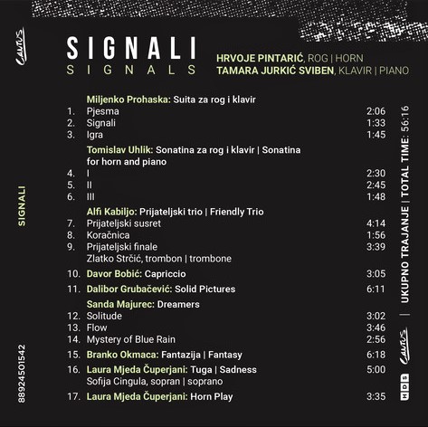 CD album s djelima hrvatskih skladatelja, Signali, Hrvoje Pintarić, rog, Tamara Jurkić Sviben, klavir, Cantus d.o.o., 2019.