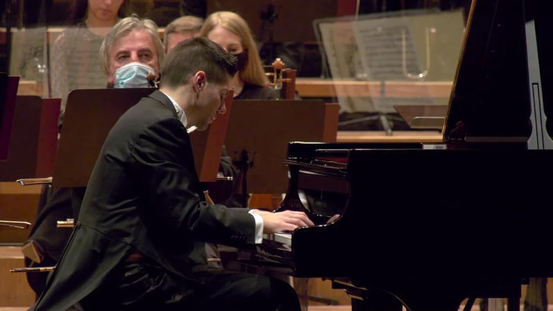 U finoj, simfonizirajućoj suradnji stapao se klavir Bruna Vlaheka i orkestra punog brige za detalje i u osluškivanju solista koji se bogato razvijenom dionicom stapao s orkestrom u živahnoj i odmjerenoj suradnji. Briga za lijepi ton također nije izostala, kao ni moćan i zaokružen forte. Ponad svega orkestar, solist i dirigent osigurali su logičan protok i dramaturgiju djela rapsodičnih širina, pa je i streamingom bio užitak slušati bez potresa neke specijalne interpretacije. Tako jednostavno, obilatijim korištenjem lijevog pedala za prigušeniju boju, i u toj jednostavnosti protoka privlačno.