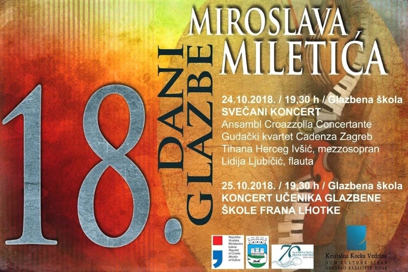 Predstavljanje monografije i svečani koncert održani su 15. prosinca 1998. u dvorani glazbene škole koja je nedavno dobila ime po skladatelju, violinistu, violistu i pedagogu Miroslavu Miletiću (1925-2018). Jedan od najpoznatijih i najizvođenijih hrvatskih skladatelja 20. stoljeća, rođeni Siščanin čija se obitelj preselila u Zagreb kad su mu bile samo tri godine, Miletić je do kraja života ostao na poseban način vezan uz svoj rodni grad. Za 50. obljetnicu glazbene škole uglazbio je pjesmu Jadranke Štajduhar Tvoj grad te čeka. u kojoj jedan stih glasi „Tvoj Sisak te čeka“. Kolege-glazbenici, kulturni djelatnici i sugrađani prepoznali su visoke umjetničke dosege Miroslava Miletića kao skladatelja i interpreta, oduživši se jednom od najistaknutijih glazbenika svoga grada utemeljenjem Dana glazbe Miroslava Miletića 2001. godine. Manifestacija koja traje nekoliko dana u listopadu zamišljena je kao poticaj glazbenome stvaralaštvu i predanijem odnosu prema glazbi, a prethodila su joj gostovanja uglednih hrvatskih i stranih ansambala i solista čiji je inicijator bio Miroslav Miletić.