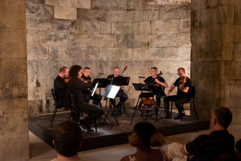 Zagrebački kvartet, prvi trajni i profesionalni ansambl svoje vrste na hrvatskoj glazbenoj sceni, u Dioklecijanovim podrumima izveo je u četvrtak, 28. srpnja program s djelima koja su nastajala u rasponu od 16. do 21. stoljeća, a taj programski koncept nazvali su Priče o ljubavi, nadanju i patnji. Za potrebe programa pridružili su im se fagotist Žarko Perišić, inače rodom iz Splita i klarinetist Milan Milošević koji predaje klarinet na kanadskom Kraljevskom glazbenom konzervatoriju te je solo-klarinetist Interkulturnog orkestra u Vancouveru.