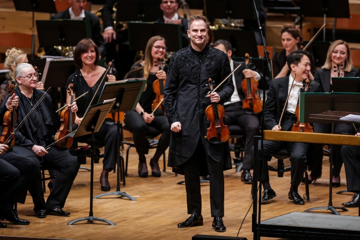 Bruchov violinski koncert dovršen i praizveden 1866. godine, jedan od možda najpoznatijih i violinistima najprivlačnijih iz bogate violinističke literature, zasjao je očaravajućim zvucima violine iz 1783. godine, djela graditelja Giovannija Battiste Gudagninija (1711-1786). Stefan Milenković, sada zreli umjetnik bogata iskustva (odjeven u crni frak uobičajen za koncertne nastupe), s uvjerljivom lakoćom, sigurno i mirno vođenim gudalom, muzikalno i sugestivno je otkrivao melodijsku ljepotu solističke dionice, potvrđujući iz stavka u stavak svoju neupitnu sviračku tehniku i oblikovanje istančanih dinamičkih nijansi. Maestro Dawid Runtz izvrsno je izbalansirao pratnju orkestra koja je bila potpora solistu, ali ni u jednome trenutku ne prekrivajući dinamičku razinu violine. Sjajnu i upečatljivu interpretaciju Stefana Milenkovića publika je oduševljeno pozdravila, a umjetnik je – nakon brzih tempa i virtuoznih zahvata, odsvirao dva stavka iz partita i suita za violinu Johanna Sebastiana Bacha (1685-1750) odgovorivši na pitanje „Što odsvirati poslije Brucha?“.