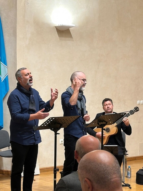 Program započet pjesmom portugalskog kralja Dinisa I. s prijelaza iz 13. u 1. stoljeće bio je primjer trubadurske tradicije koja je uz glazbu bila važna i za razvoj portugalskog književnog jezika. Od skladateljskih imena, uz obrade tradicijskih napjeva iz Lombardije/Italije, Andaluzije/Španjolske, Makaua/Kine i Timora, na programu su bile skladbe Tomasa Cecchinija, Filipea da Madre de Deusa i Manuela Machade, uz nekoliko osuvremenjenih varijanata pjesama iz 16. stoljeća koje potpisuju Filipe Faria i Sérgio Peixoto. Pjevali su na portugalskom i na španjolskom, a ideja im je povezati svjetske regije kojima je upravljao Portugal šireći tako svoj jezični i kulturni utjecaj ali i preuzimajući lokalne značajke autohtonih glazbenih tradicija.