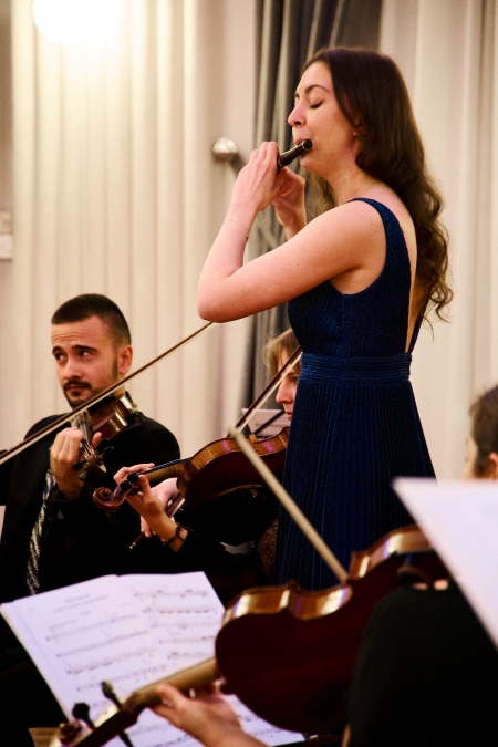 Izvedbi Koncerta za pikolo i gudački ansambl, čiji su stavci Predigra, Romanca i Igra daljnje potvrde Papandopulove neiscrpne skladateljske mašte, njegovih raznih izvora nadahnuća, pa i folklornih, kao i trajno melodijski lijepih i harmonijski suvislo mišljenih dijelova koji uvijek čine skladne cjeline, svakako valja uputiti najviše pohvale i priznanja. Jer, bravura kojom Angela Borlacchi svira tu „malu flautu“, flautu piccolo, koja osvaja prodornim a ipak za obitelj instrumenta poslovično toplim i ugodnim zvukom, govori jednako o velikom bogomdanom talentu kao i o odličnom školovanju. Uostalom, riječ je o glazbenici koja je 2011. diplomirala na Konzervatoriju Luca Marenzio u Bresci a potom se dalje usavršavala na Akademiji Santa Cecilia u Rimu i završila magisterij na Haute École de Musique u Lausanni. Brojne međunarodne nagrade, nastupi diljem Italije i Švicarske, te osvojeni praktikum u Sinfonie Orchestre Biel Solothurn u Švicarskoj postaje su karijere koja je očito u stalnom usponu pa se možemo radovati da je na tom putu Angela Borlacchi vrijeme i sposobnosti posvetila i izvedbi remek djela hrvatskog skladatelja. Nadati se da će ga možda i dalje promovirati.