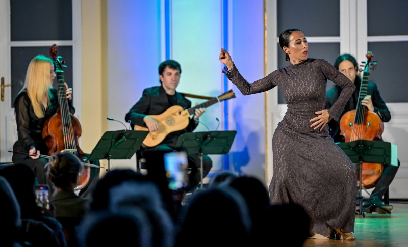 Instrumentalni biseri i ples, anonimni autori glazbe ili pak preuzeti glazbeni fragmenti, melodije u obradi Fahmija Alghaia, krajnje osebujan program nazvan Ponovno otkrivanje Španjolske, onog renesansnog i ranobaroknog doba u kojemu je Španjolska nakon Kolumbovih otkrića Novoga svijeta živjela u raskoši velikog bogatstva. Taj čarobni svijet uzbibanih ritmova i miješanja glazbenih kultura dočarali su instrumentalisti Johanna Rose i Rami Alghai, viole da gamba, Carles Blanch, barokna gitara i Agustin Diassera, udaraljke, uz pomno vodstvo Fahmija Alghaia koji također svira violu da gambu. Međutim, sve bi bilo mnogo manje atraktivno da podijem Velike koncertne dvorane HNK u Varaždinu nije vladala uzbudljiva plesačica flamenca Ana Morales. Mijenjala je haljine u skladu s vrstama plesa, a glavno što je pokazivalo njezino ogromno plesno iskustvo bile su već pomalo iznošene ali u svojoj jednostavnosti izuzetno šarmantne cipelice.